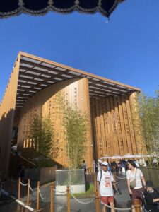 こちらのパビリオンは伝統的な書道の巻物を広げたような竹の外壁が特徴的で、中国感が溢れる外観が目を引きます。