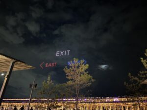 最後にはスポンサーのロゴやQRコード、出口の案内などもドローンで綺麗に映し出されていて、