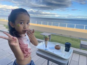 ちなみにこの日、娘が選んだのは抹茶ソフト。髪型も相まって急にお姉さんになった気がします😊