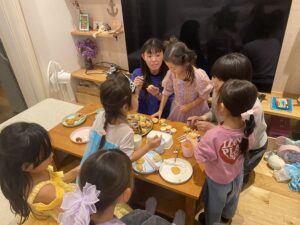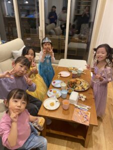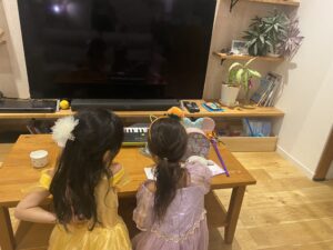 レッスンの後は近所の我が家でハロウィーンパーティーの続きをします。
