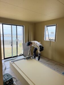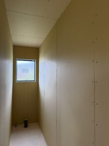現在こちらの現場は1階の石膏ボードの工事中です!!