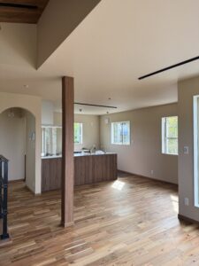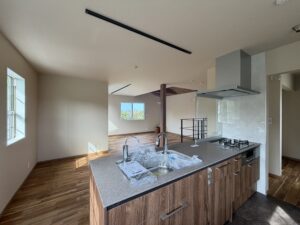 フローリングや天井の梁・家具などに木目調を取り入れた温もりのあるお家.*・゚