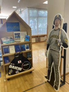 地元の星の阪神タイガース近本選手の等身大パネルや