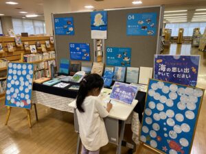 ただ夏の終わり頃には海に関する本の展示の横に「海の思い出かいてください」という参加型の展示コーナーがあったり、