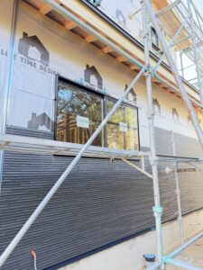 本日から現場には職人さんが入ってくださっており外壁工事が進んでいました!