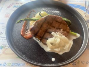 メインの豚のローストは少し赤身掛かっていて、友人は再度火入れをお願いしていました。。