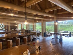 中に入ると古民家のような大きな梁が印象的な広い建物になっています。