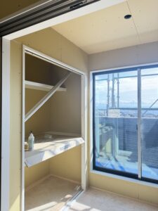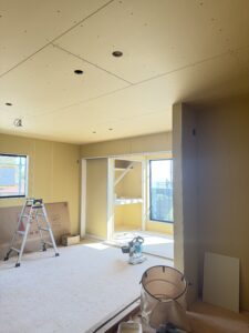 別の淡路市の現場では現在石膏ボードの工事がほぼ終わりを迎えています!