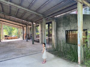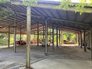 元々牛舎として使用されていた所の柱、梁、床、天井などはそのままにして