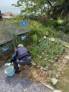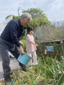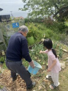 雑草を抜かないと雑草が肥料で大きく育ってしまうからと雑草を抜くところから一緒に始めます。