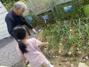 よく見てみると12月に一緒に玉ねぎの苗を植えてくれた横の畑のおじいちゃんが、