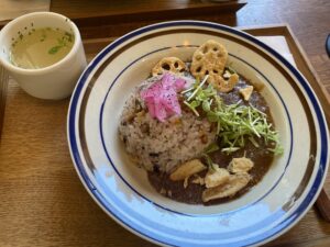 ランチメニューには淡路鶏を使った薬膳キーマカリーや淡路牛すじカリー、